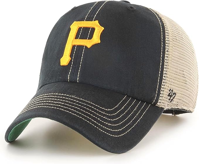 47 MLB Pittsburgh Pirates Trawler Primary Logo Team Color Mesh Trucker Clean Up Adjustable Hat, Adult One Size Fits All
