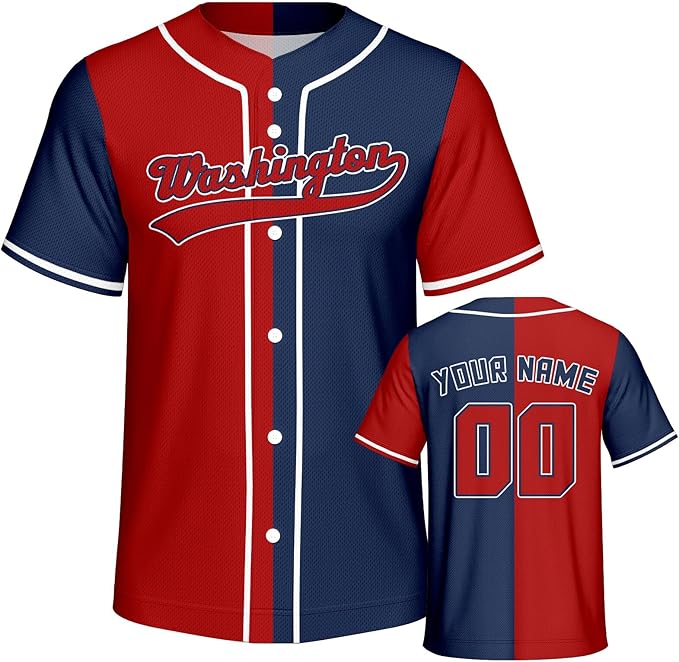 Personalized Washington Nationals Jersey Custom Name and Number Button Down Short Sleeve T-Shirt Sports Uniform Gifts for Men Women Youth